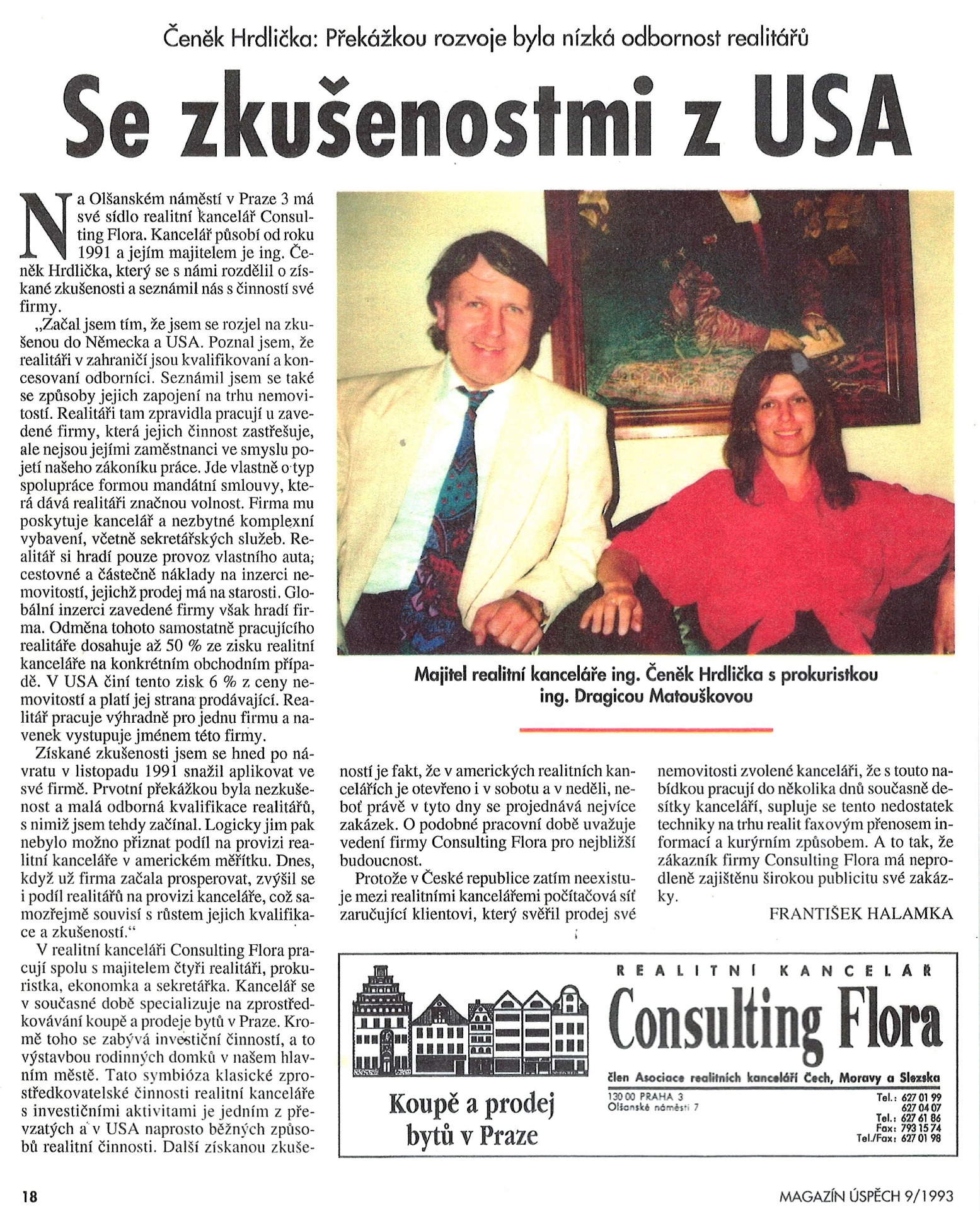 Nejsme žádní nováčci - na trhu nemovitostí jsme již více než 30 let. Jednatelé naší RK Ing. Čeněk Hrdlička a Ing. Dragica Matoušková založili a úspěšně provozovali od r. 1991 tyto realitní společnosti, v nichž mají za sebou tisíce úspěšně zrealizovaných nemovitostních obchodních případů ve svých firmách: